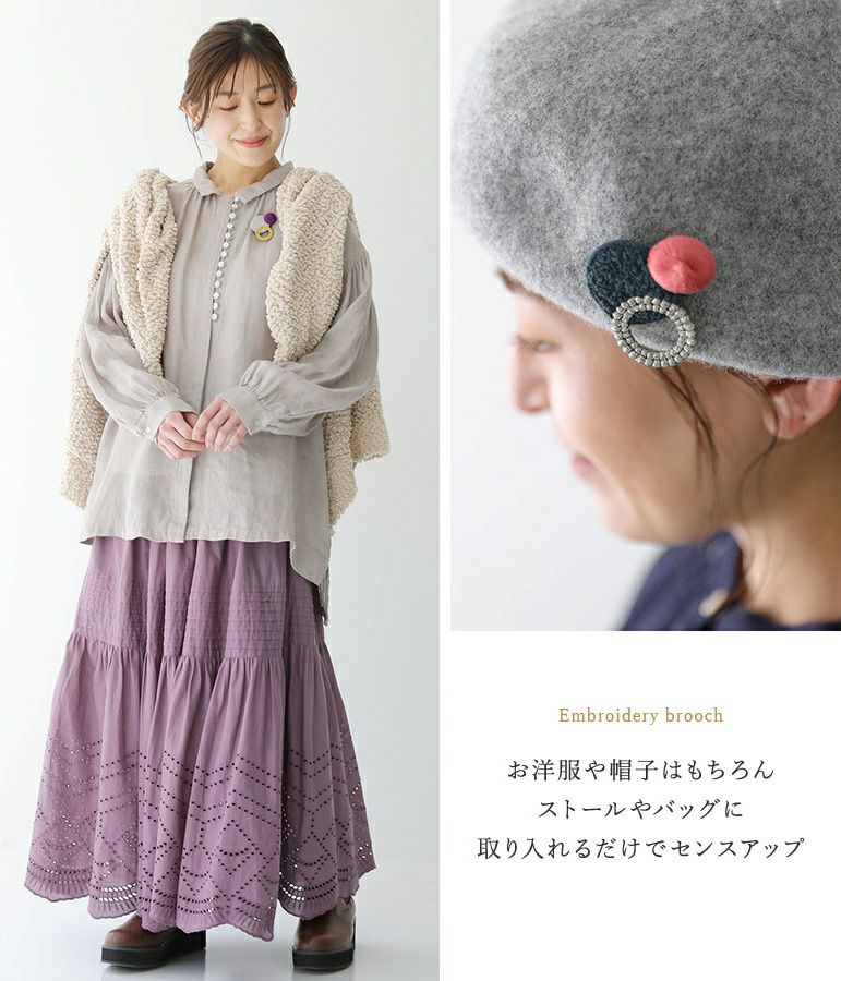 『30%OFFセール★OUKA SELECT 刺繍デザインブローチ』