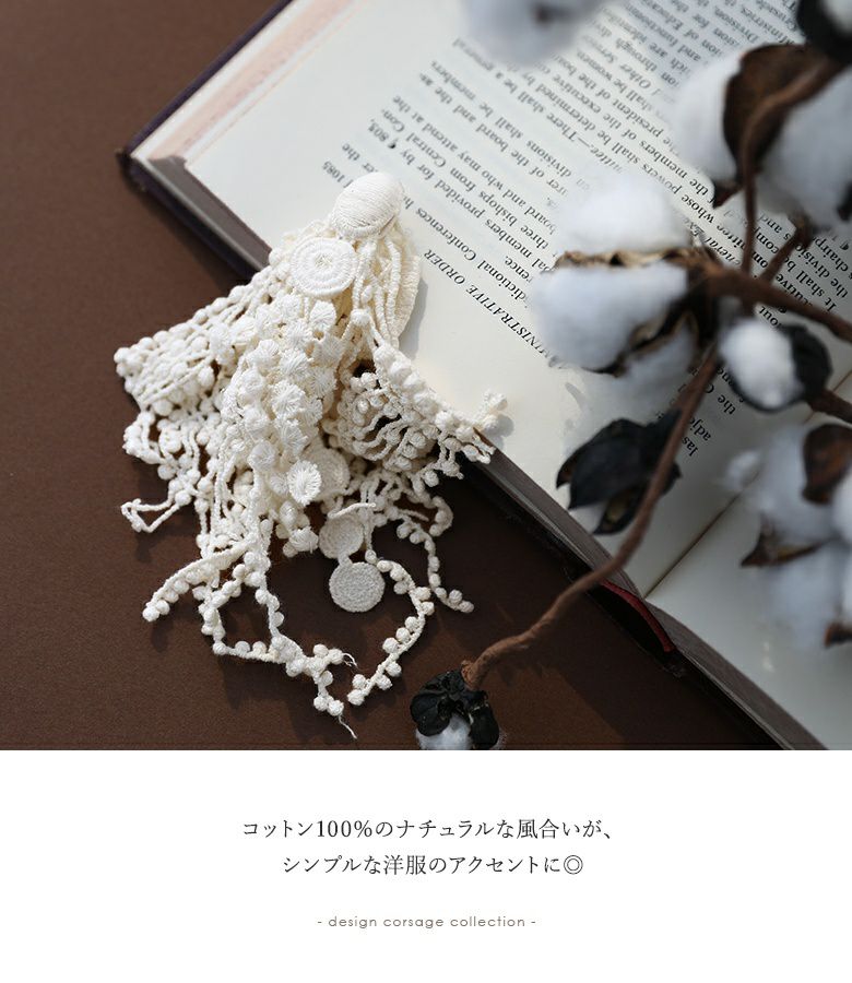 コットン100%のレースデザインブローチ。