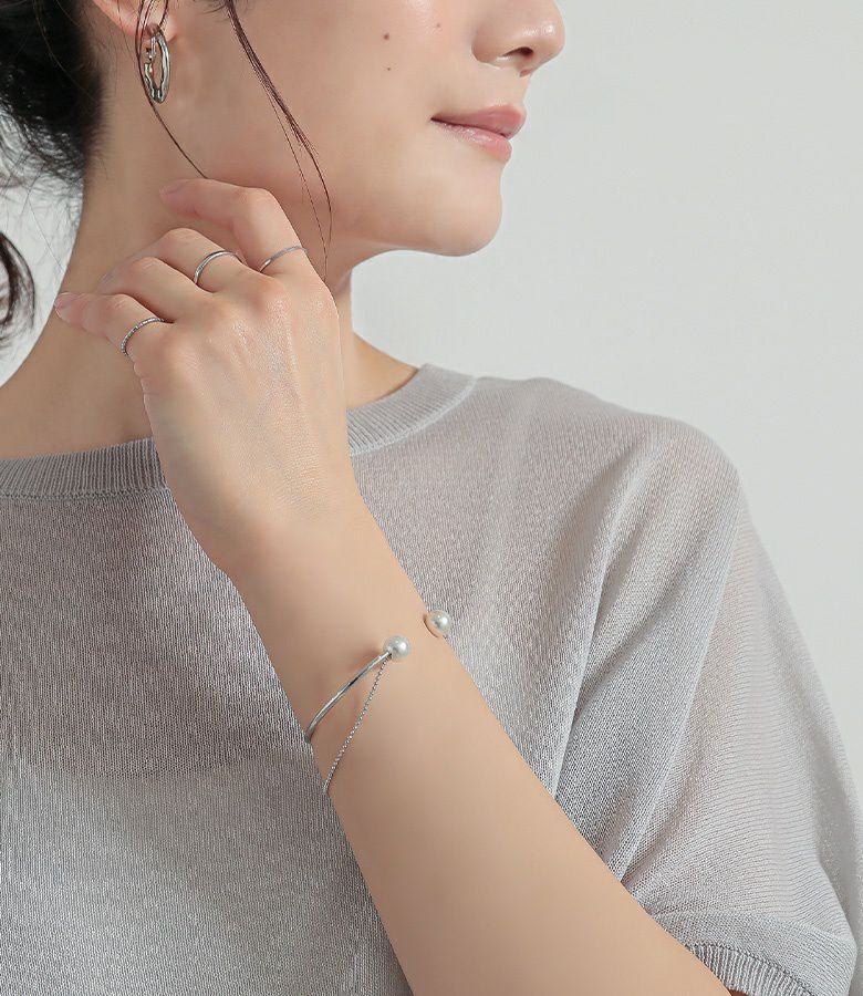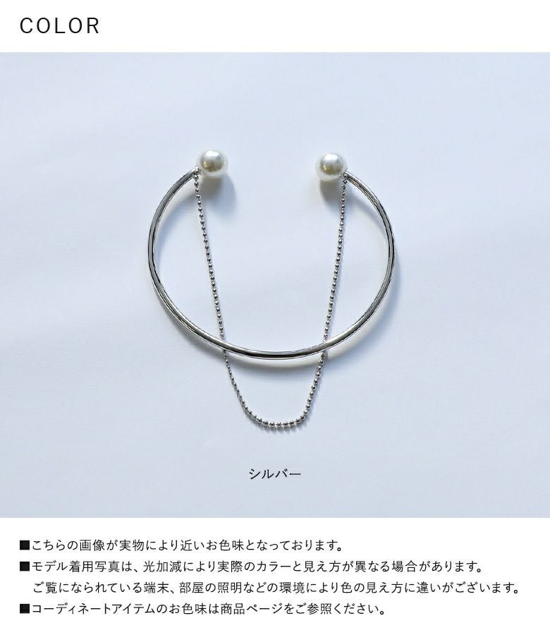 フェイクパール×チェーンのきれいめ2連ブレスレット。