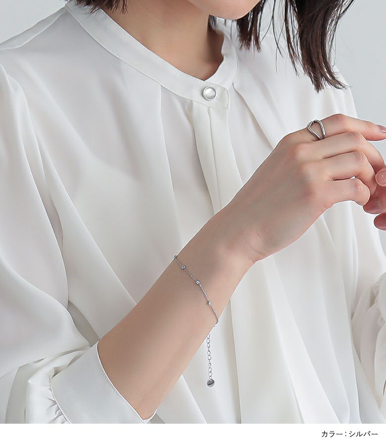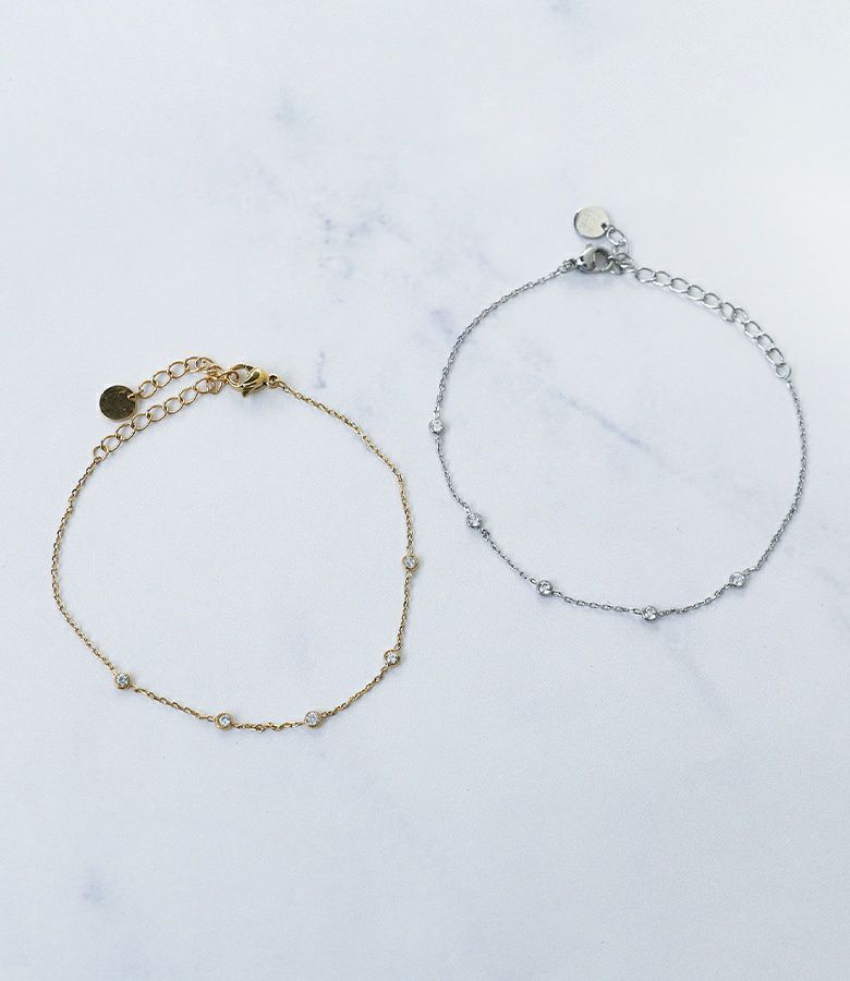 さりげないラインストーンでコーデに合わせやすいチェーンブレスレット。