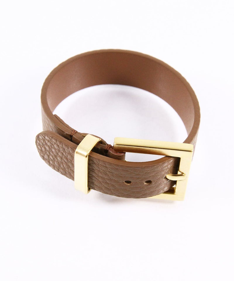 こなれ感漂うスタイルが完成する、ベルト風バックルデザインブレスレットです。