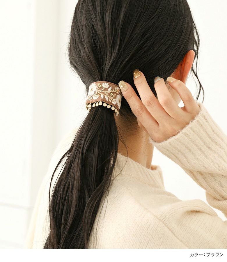 『花柄刺繍ヘアーカフス』
