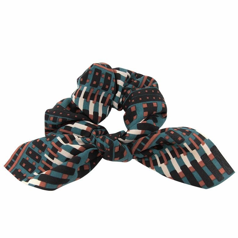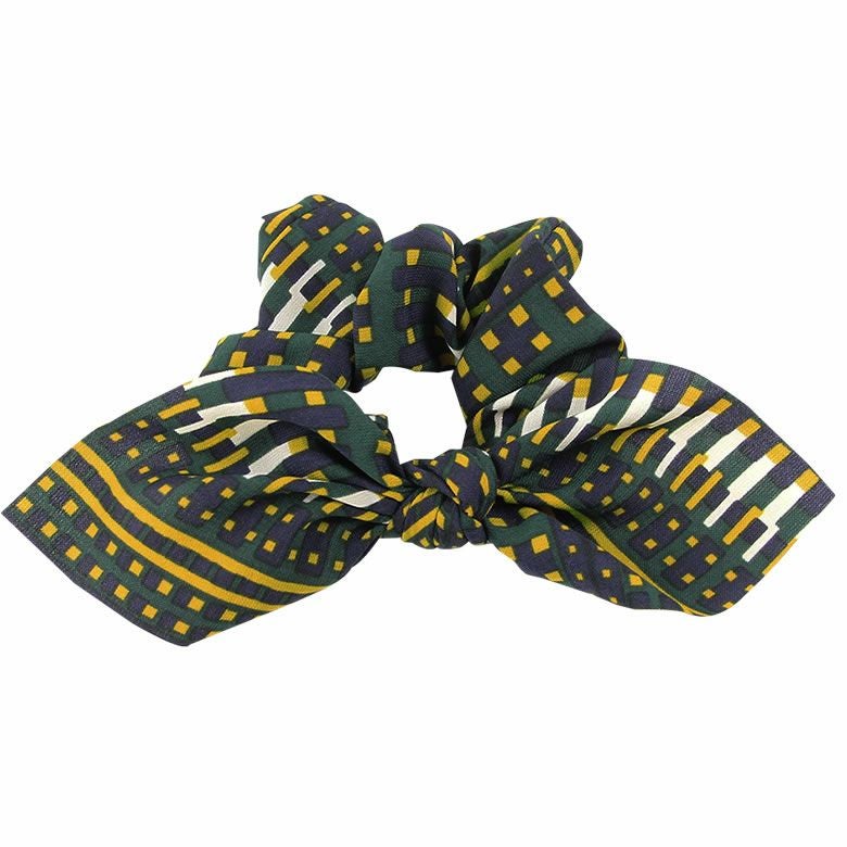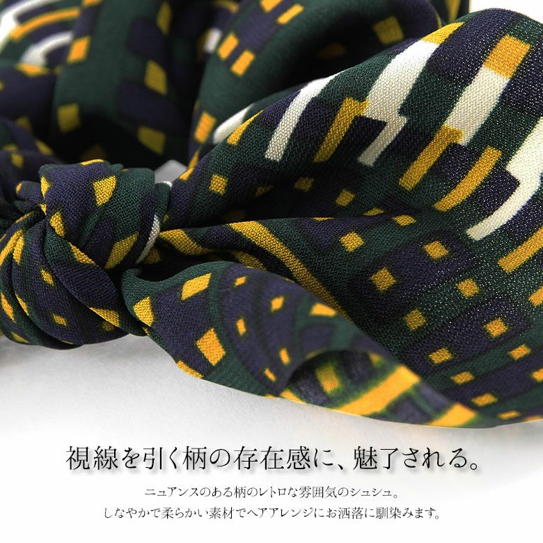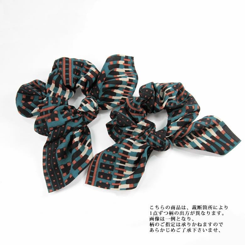他にはない柄でお洒落に差がつく、レトロチェック柄リボンシュシュです。