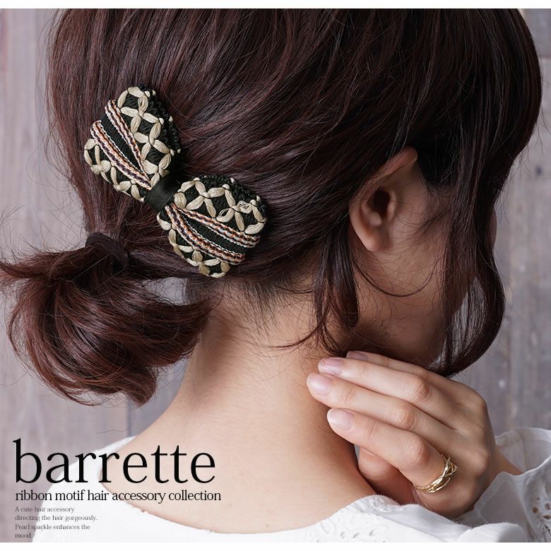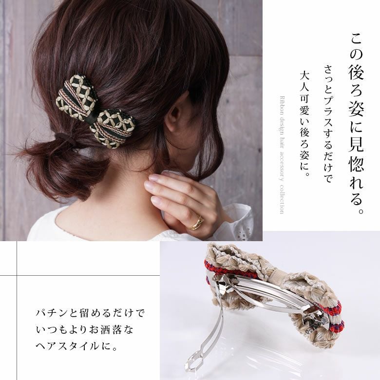 いつもよりお洒落なヘアスタイルになれる、レトロデザインリボンバレッタです。