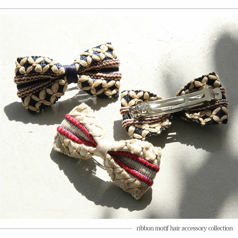 プラスワンでお洒落♪レトロ柄リボンバレッタ。