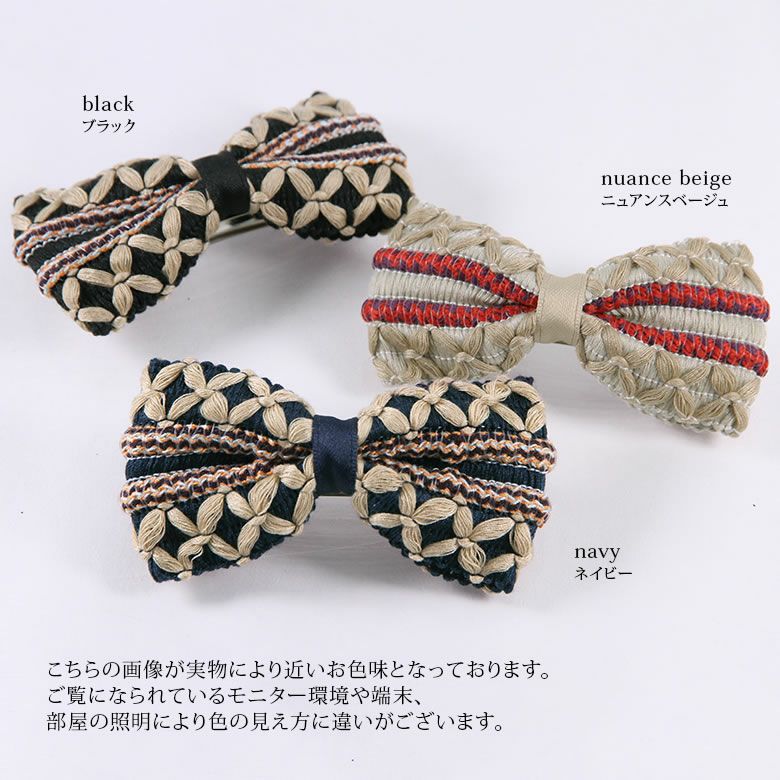 鮮やかな配色なのに目立ちすぎない、印象的なレトロ柄のリボンバレッタ。