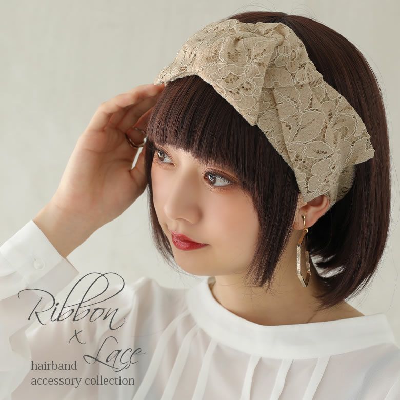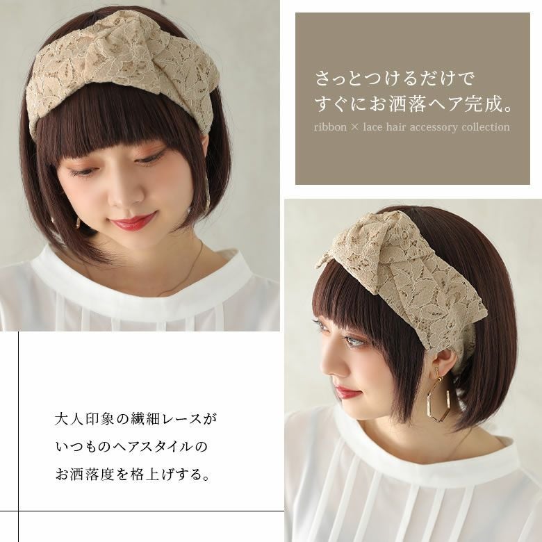 いつものヘアスタイルのお洒落度格上げ、リボンデザインレースヘアバンドです。