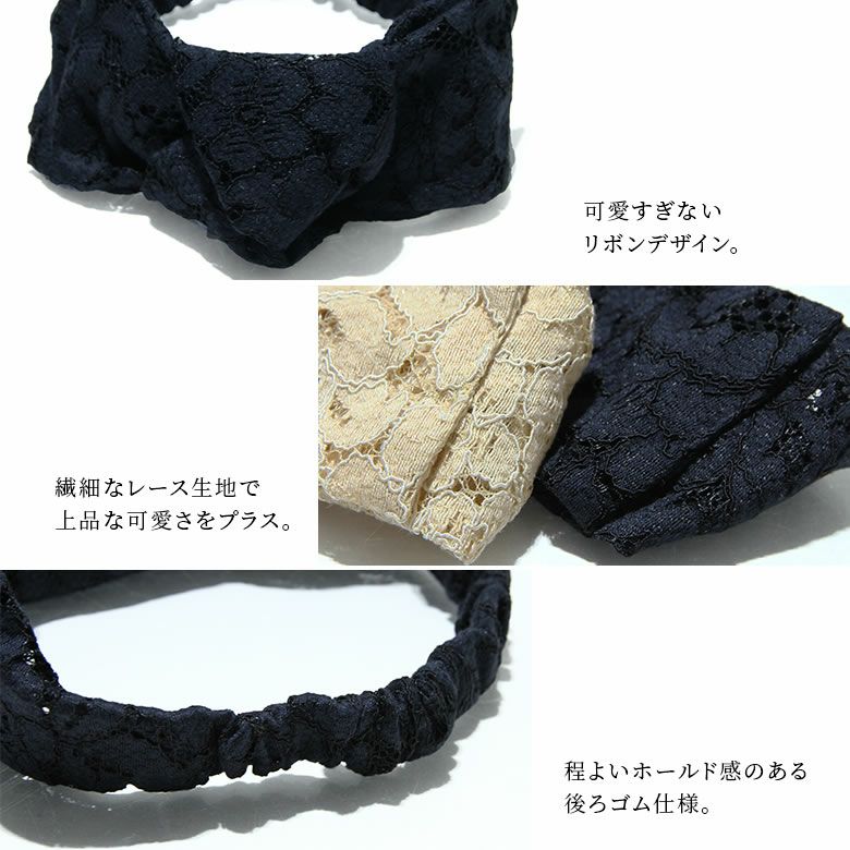 『リボンデザインレースヘアバンド』