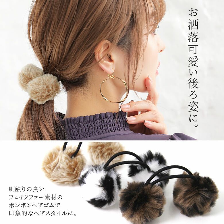 ふんわり大人可愛い魅力を放つ、フェイクファーポンポンヘアゴム。