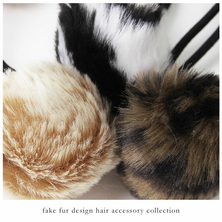 ニュアンス漂うほんのりアニマル柄の配色と、無地のファーモチーフ。ふんわりなめらかな手触りのフェイクファー素材で、季節感溢れる印象的なヘアスタイルが完成します。