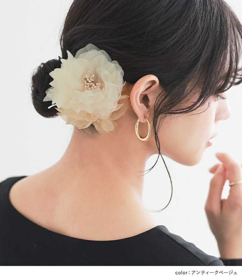 透け感のあるシアー素材の花びらが上品な印象に。ボリュームをキープできるしっかりとした生地感です。