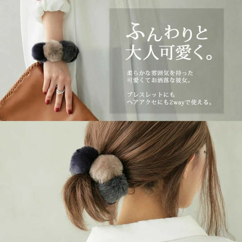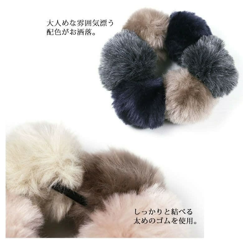 ふんわりと大人可愛い、MIXカラーファーポンポンヘアゴムです。