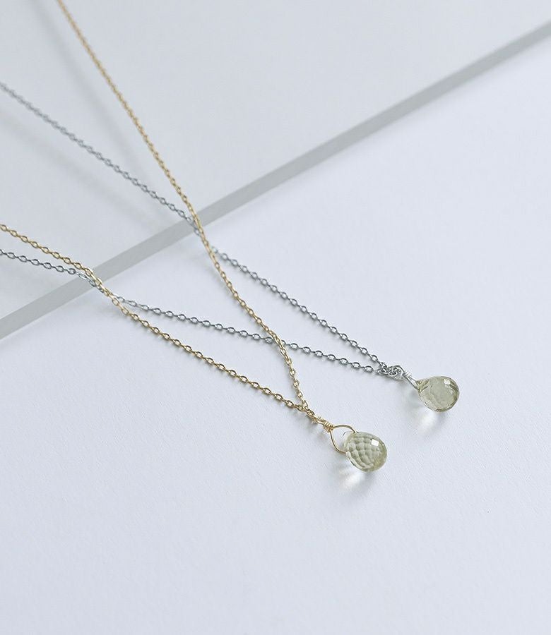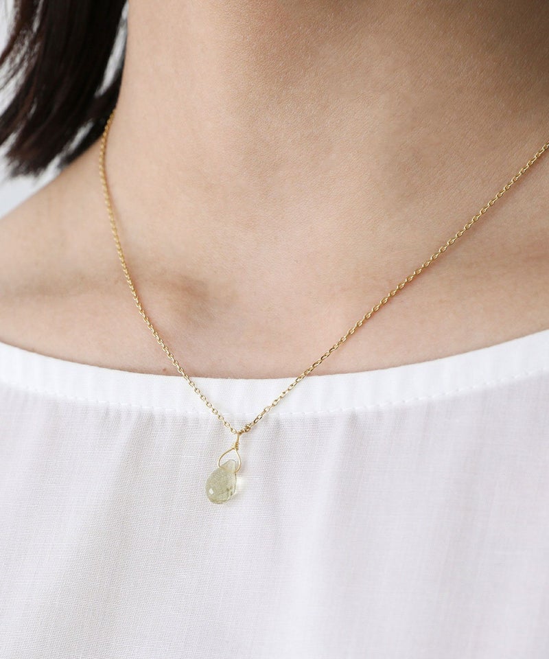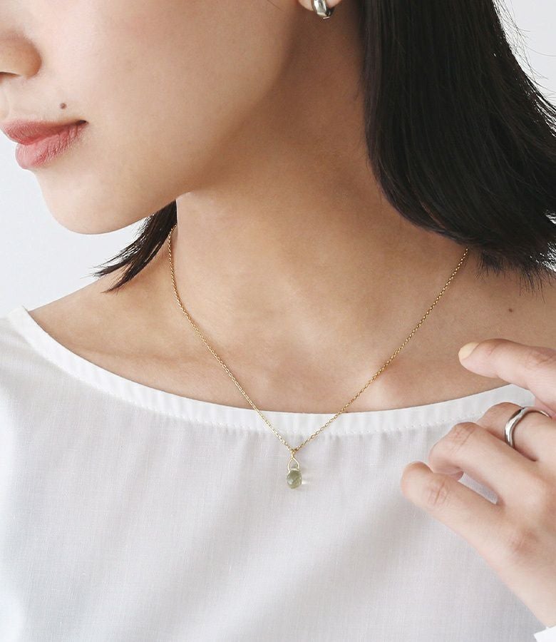 日本製の天然石ネックレス。華奢なチェーンと天然石モチーフが、首元のアクセントになり上品な印象に仕立てます。