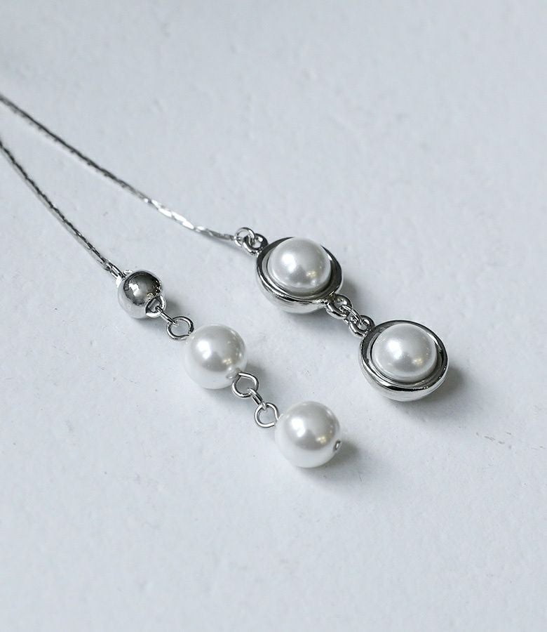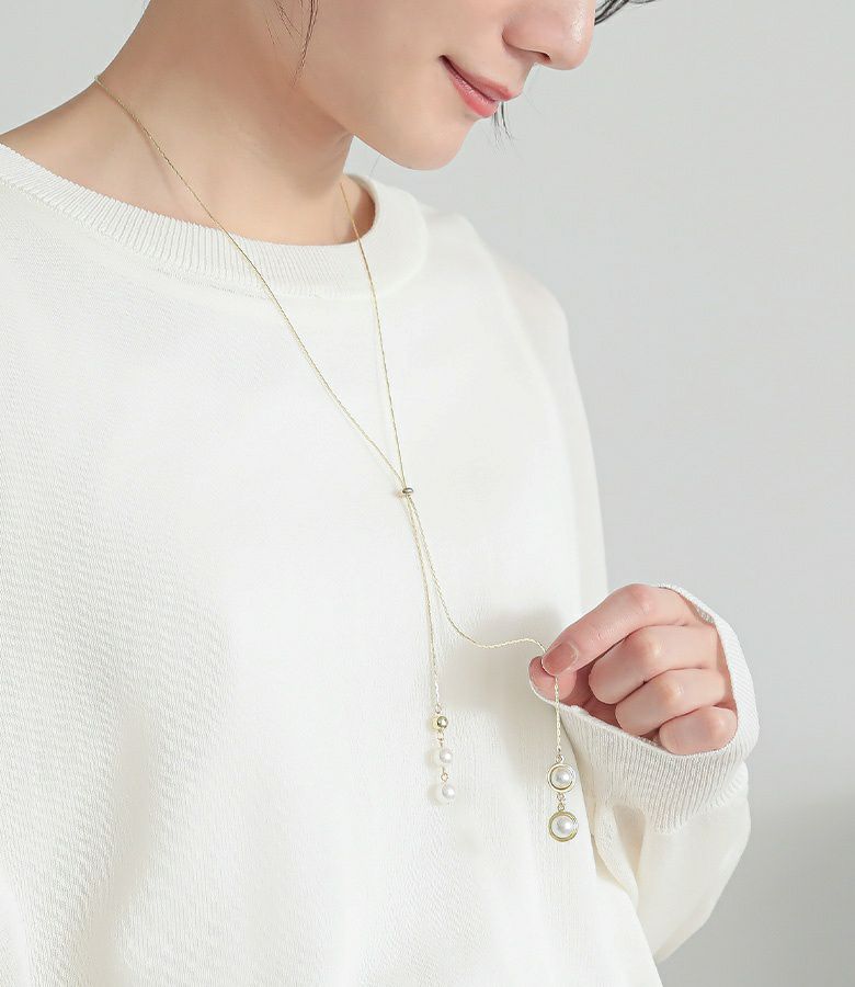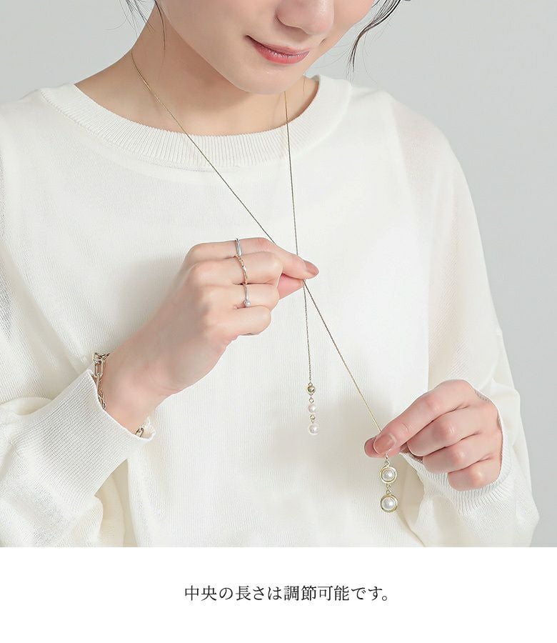 揺らめくフェイクパールがポイントのデザインネックレス。