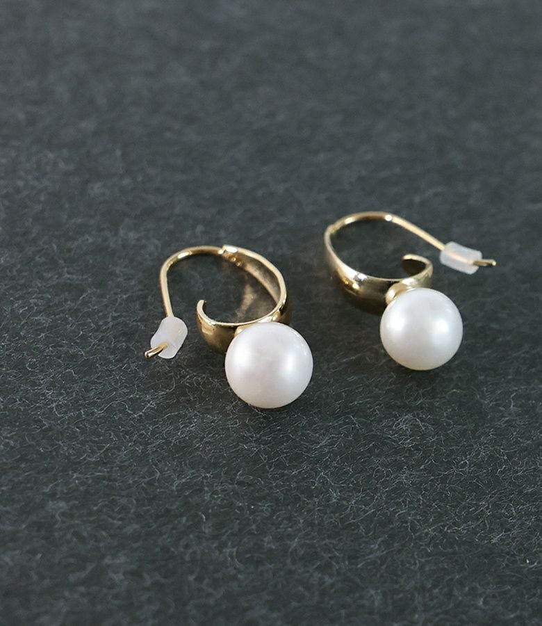 ウェーブのニュアンス感がポイントのフェイクパールピアス。