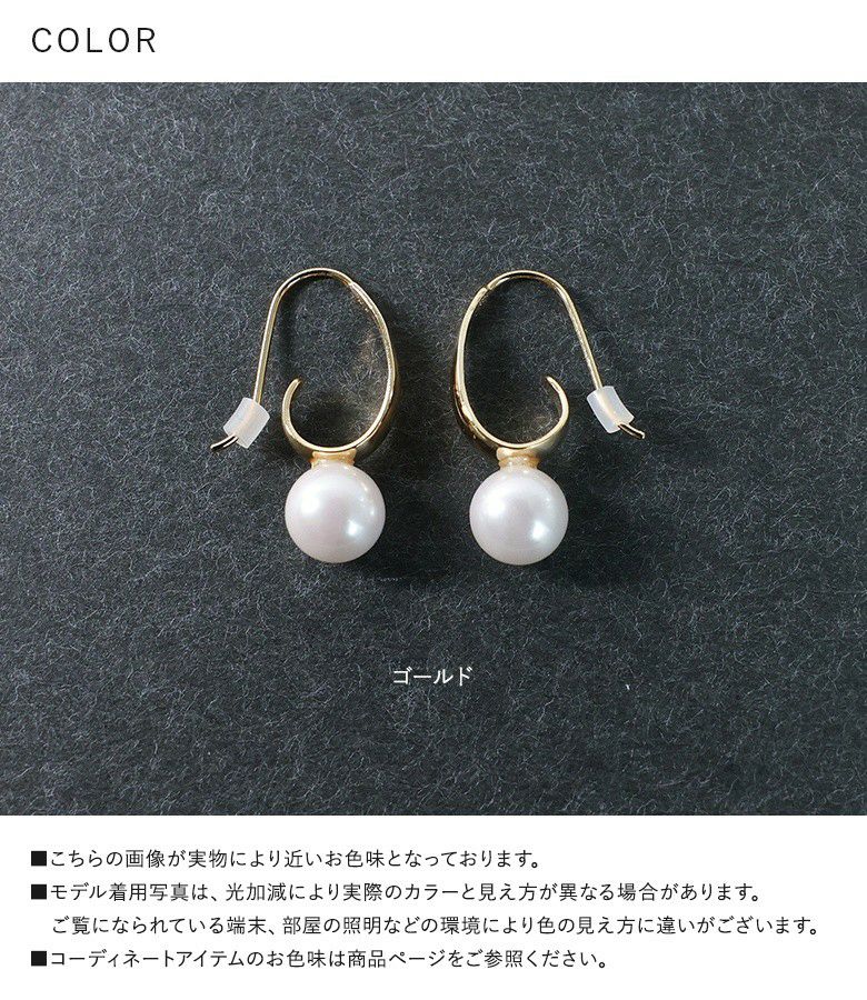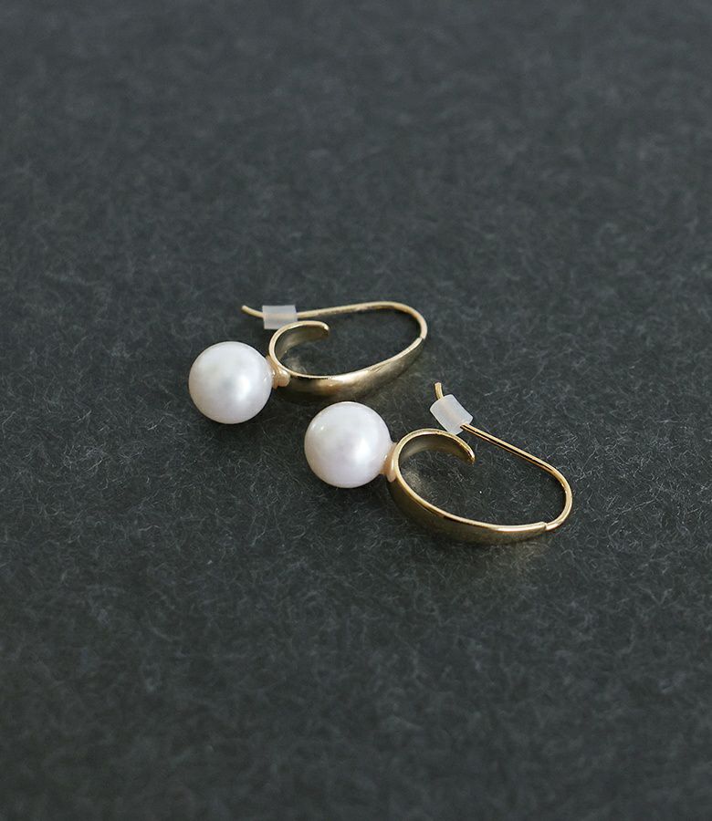 ウェーブのニュアンス感がポイントのフェイクパールピアス。