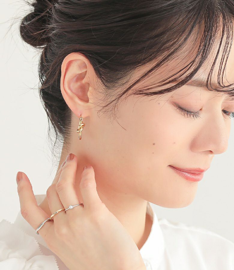 シンプルだけど存在感のある、ノットデザインフープピアス。