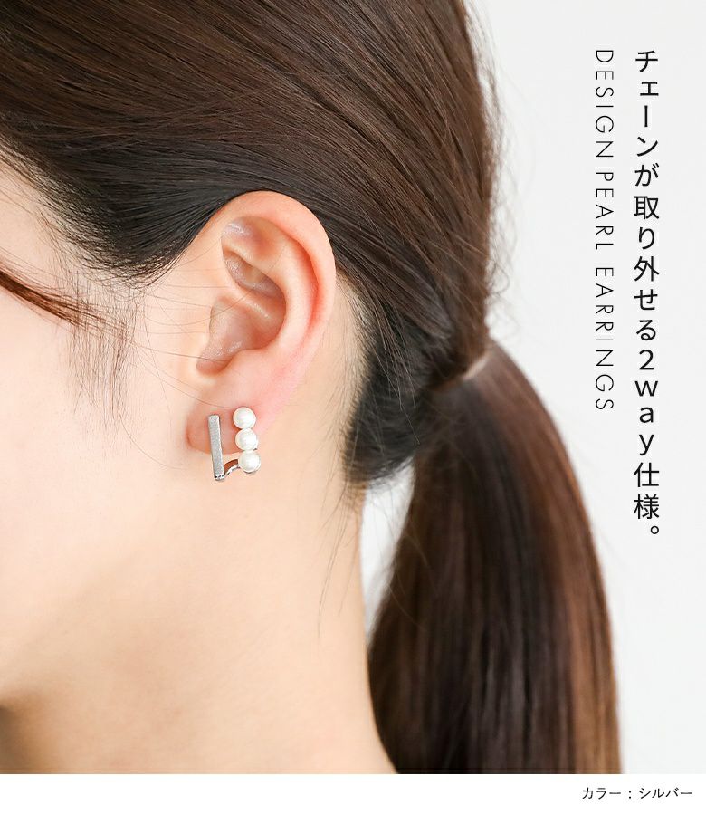 2way仕様でコーデの幅が広がる、デザインフェイクパールイヤリング。