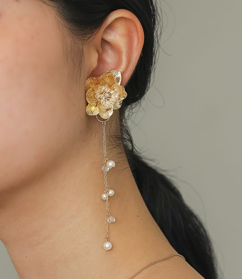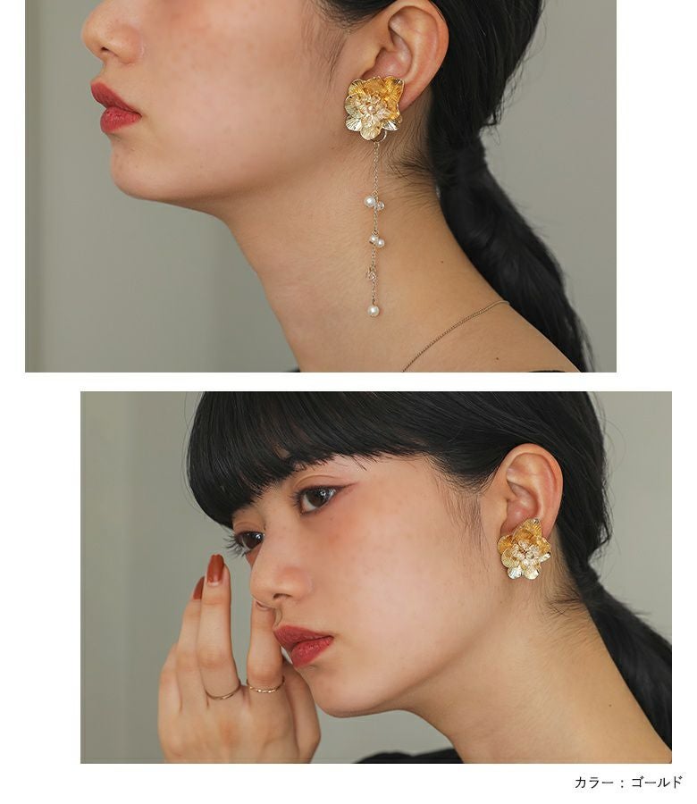 2wayで楽しめるデザインフラワーイヤリング。