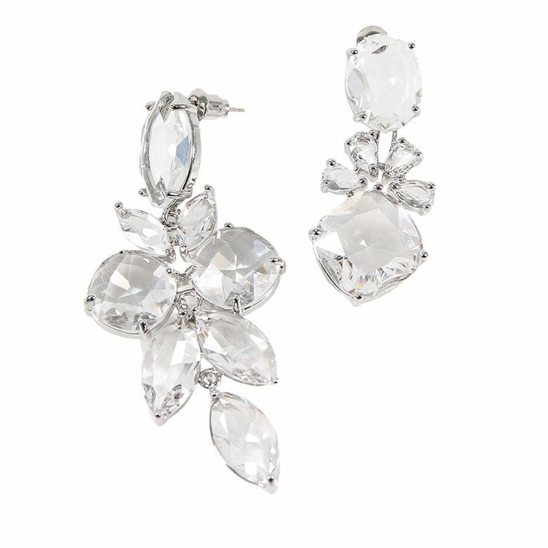 特別な輝きに心惹かれる、アシンメトリークリアビジューピアスです。