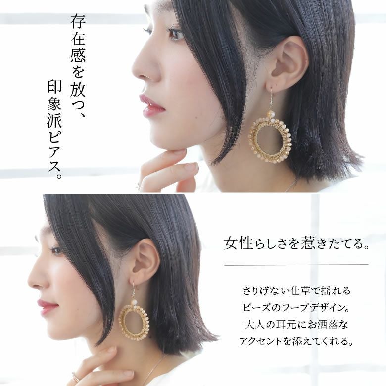 ワンランク上の大人顔へ導く、サークルモチーフビーズピアスです。