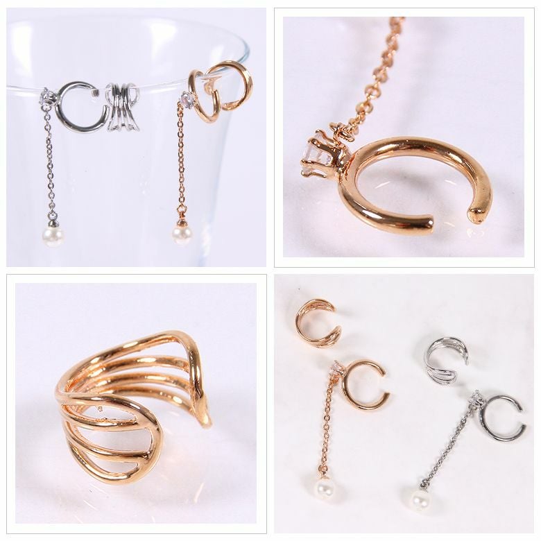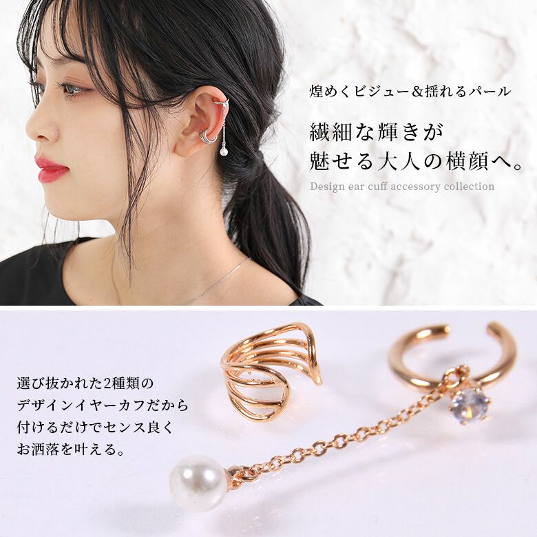魅力惹き立つパール&ビジューイヤーカフセット。