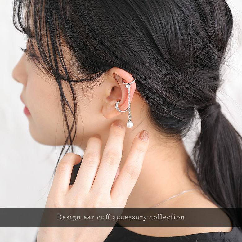 耳に挟むだけのイヤーカフタイプだから、ピアスホールがない方も簡単に耳元のお洒落をお楽しみいただけます!
