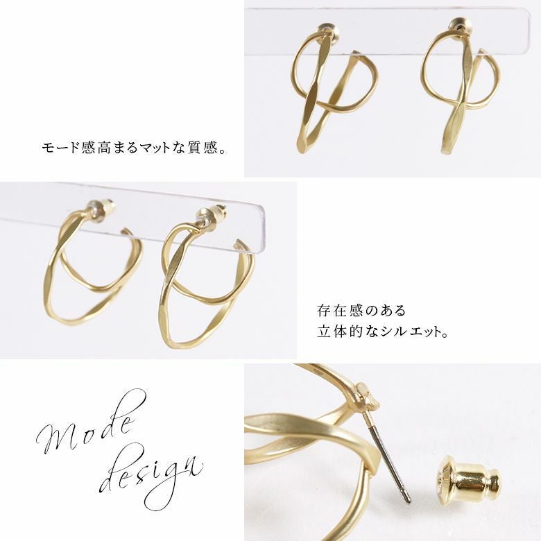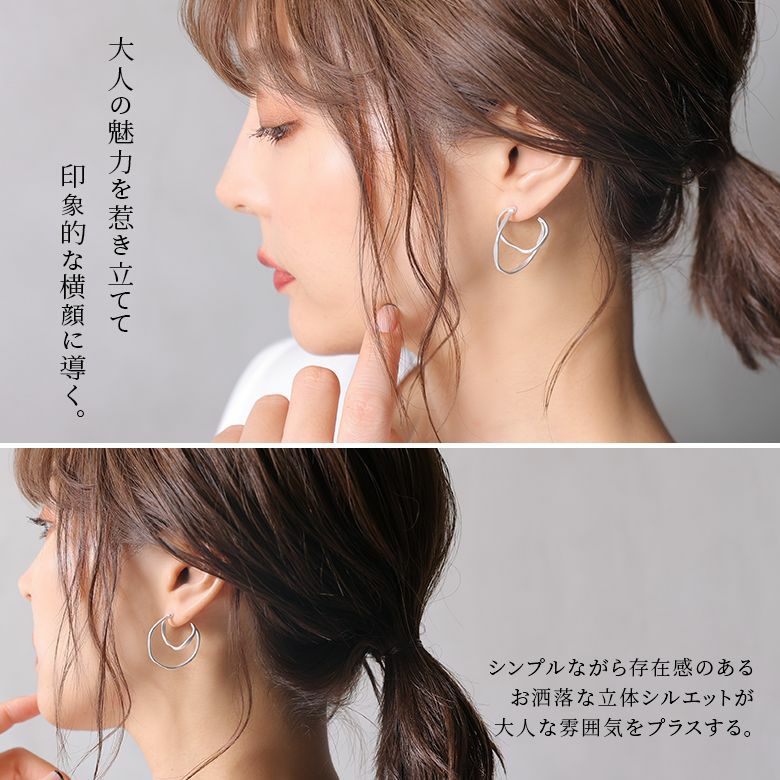 大人の魅力惹き立つ、立体フープピアスです。