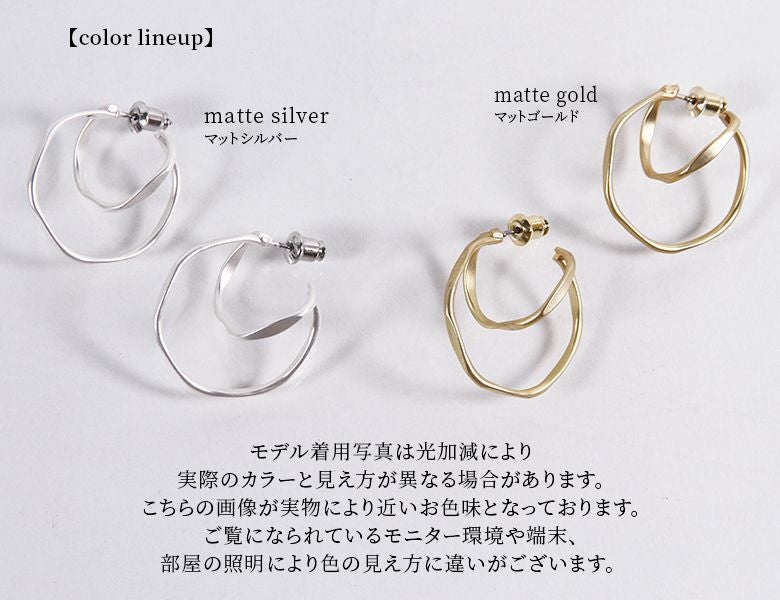 モードに映えるダブルサークル立体ピアス。