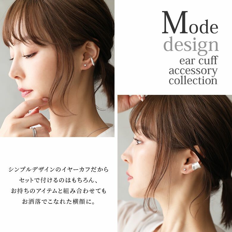セットで付けるのはもちろん、お手持ちのピアスやイヤーカフと重ね付けも楽しめる、何にでも合わせやすいデザインです。