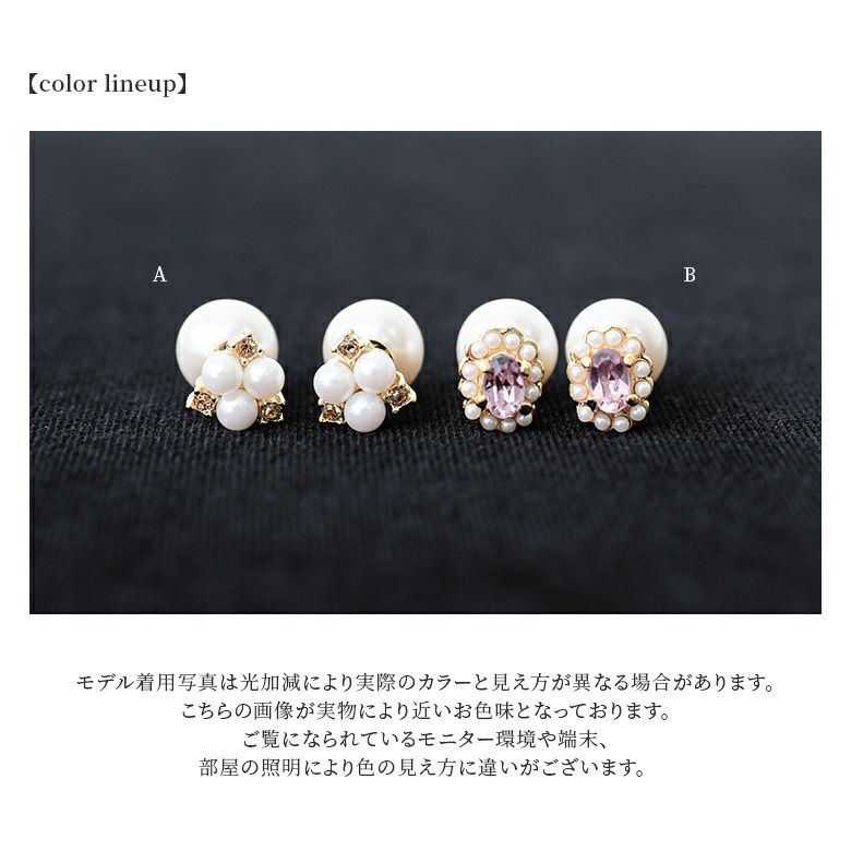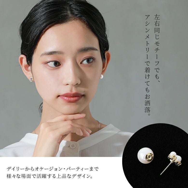 左右同じモチーフでも、アシンメトリーで着けてもお洒落。デイリーからオケージョン・パーティーまで使える上品なデザインです。