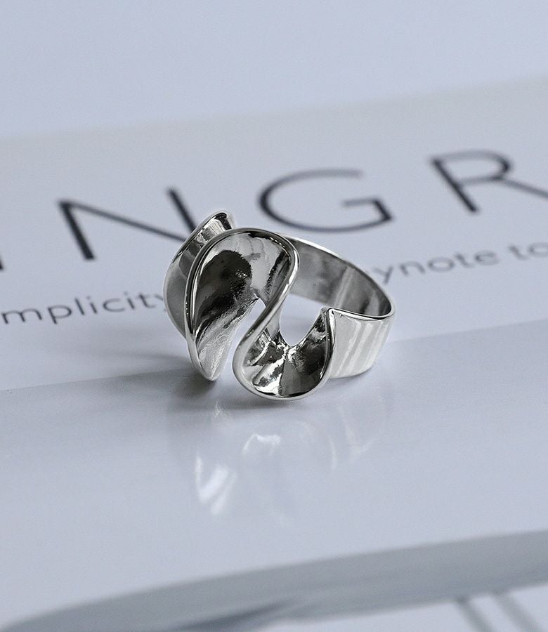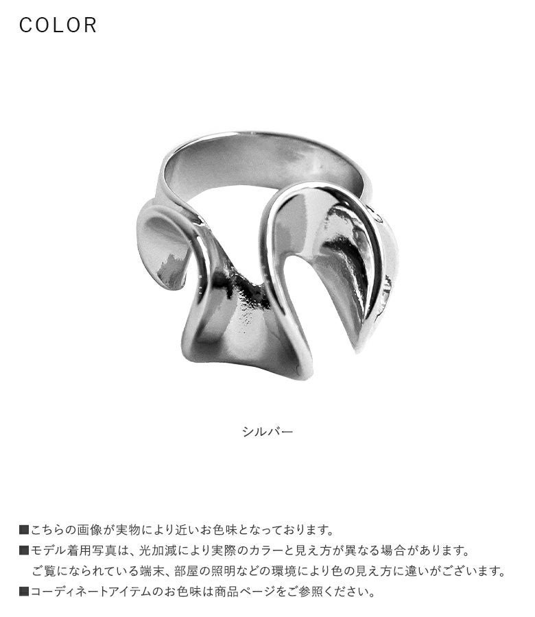 立体感のあるウェーブモチーフが印象的なリング。手元が一気に華やかになる、存在感のあるデザインです。