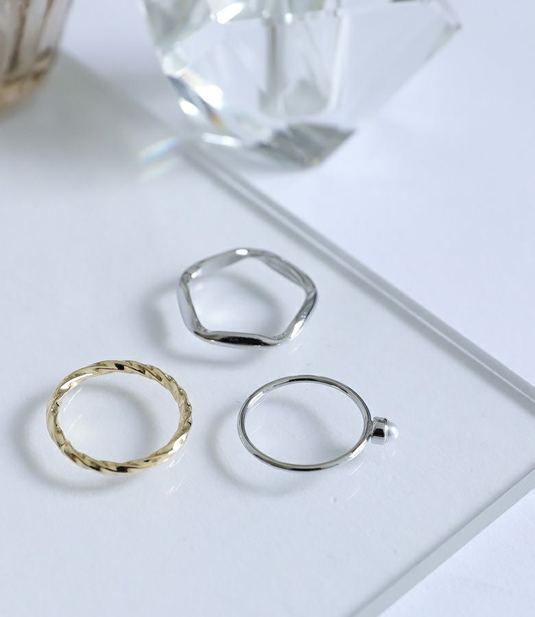 華奢でデイリー使いのしやすいリングの3点セット。