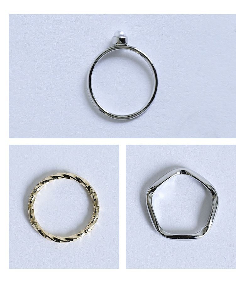 華奢でデイリー使いのしやすいリングの3点セット。ゴールドのみ12号、それ以外は11号と、サイズが異なります。