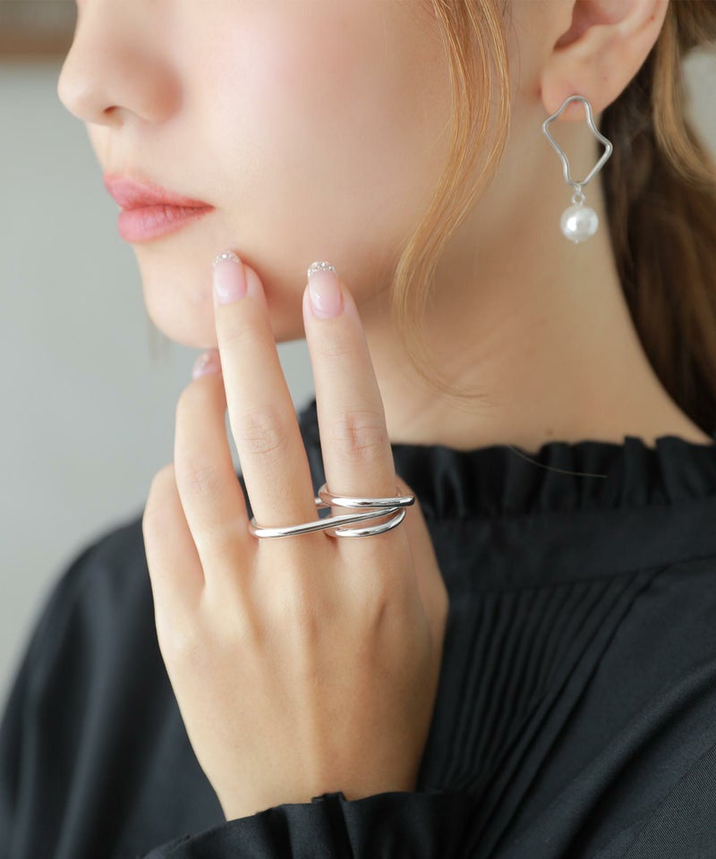 2本の指にはめるフォルムが特徴的な、ダブルリング。
