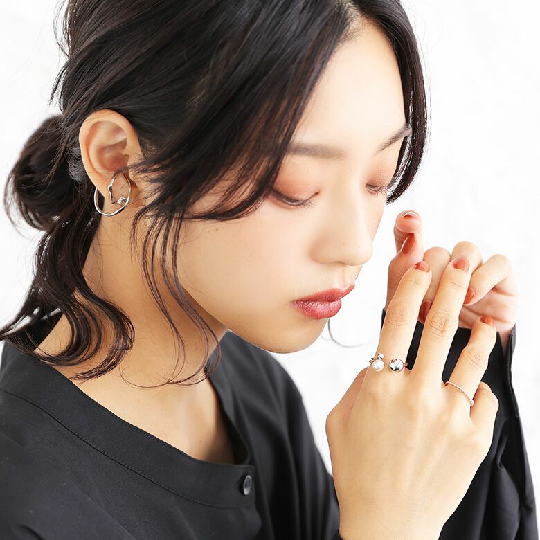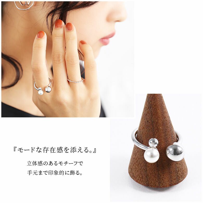 さっと付けるだけでこなれ感漂う、パール×メタルボールフォークリングです。
