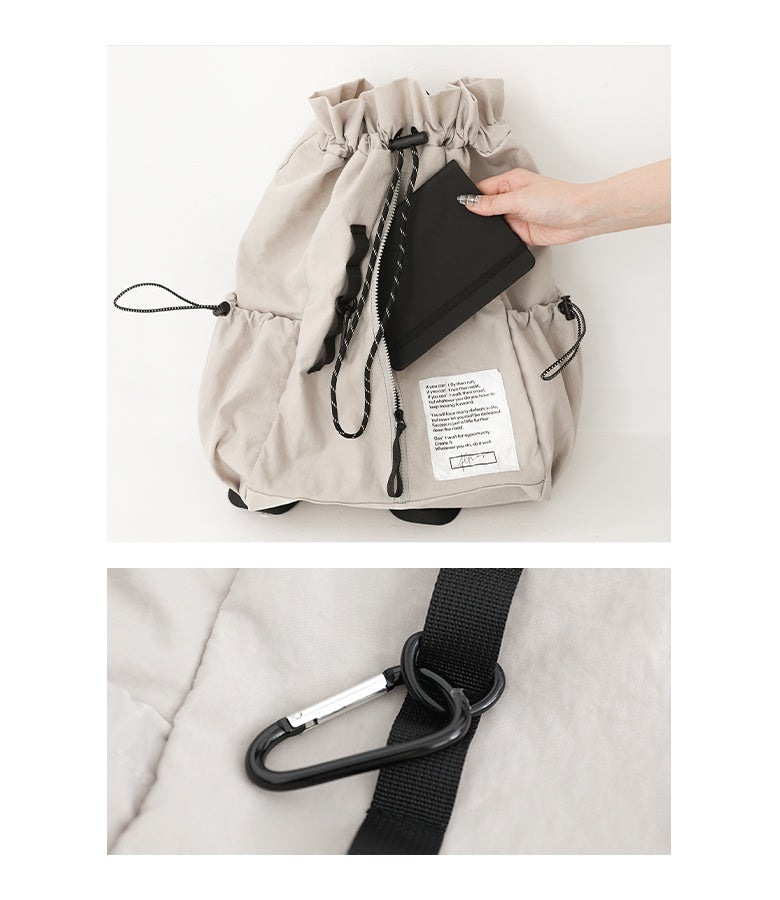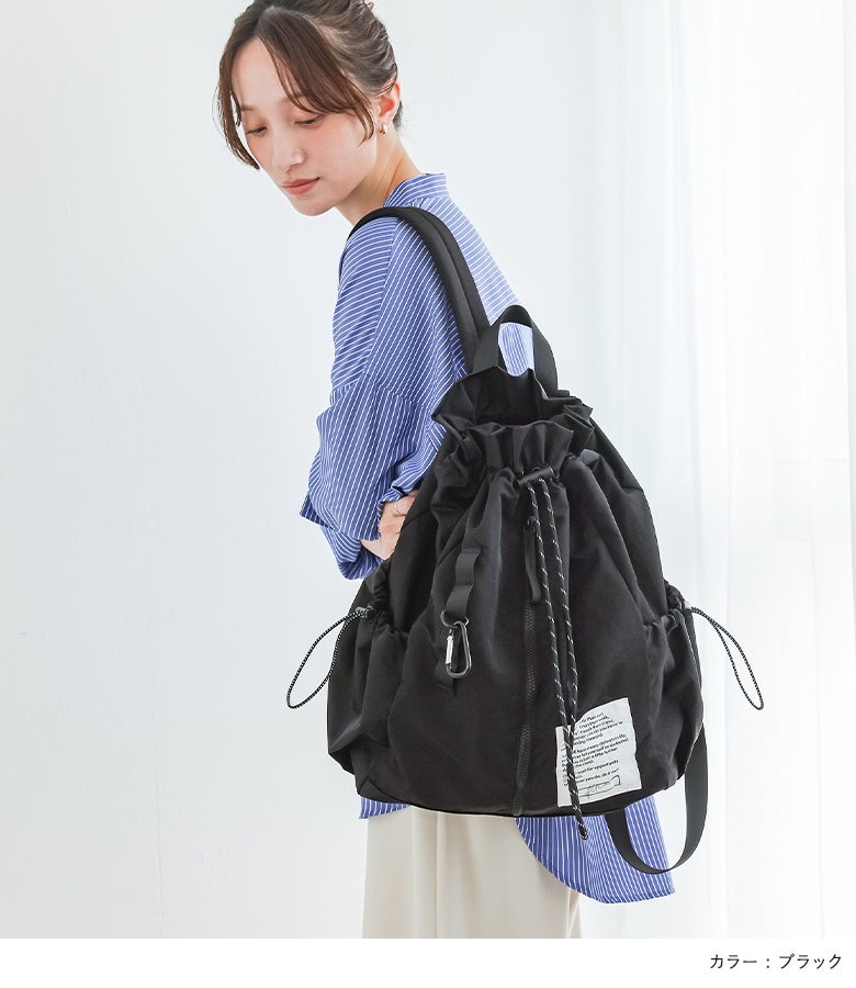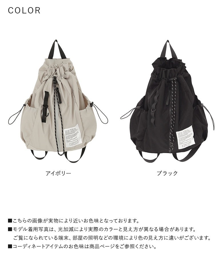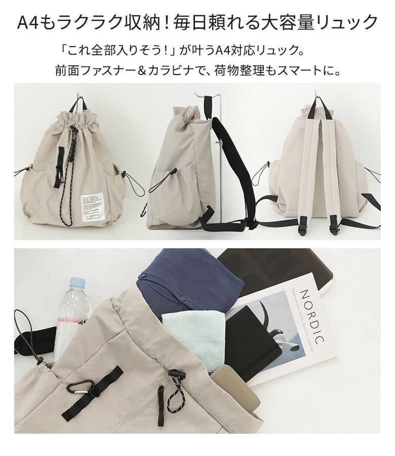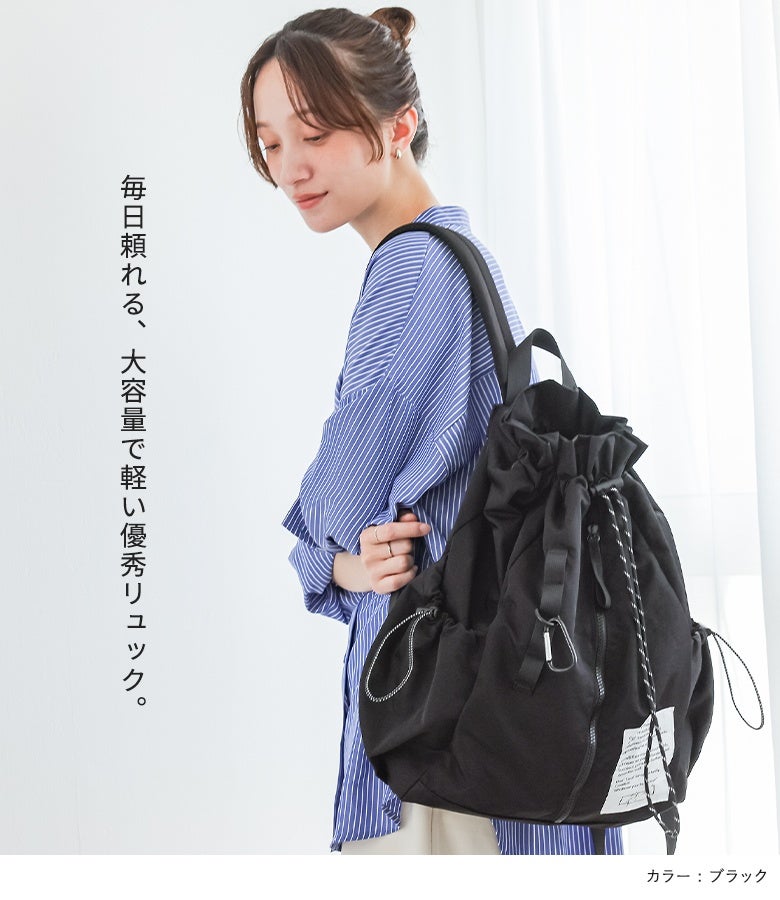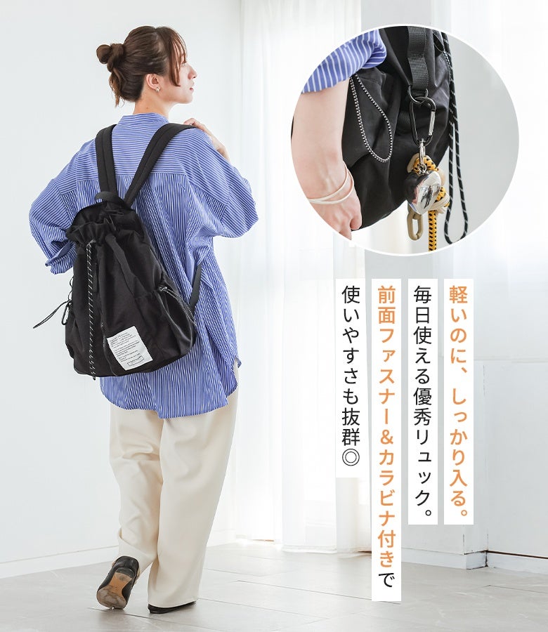 軽いのにしっかり入るドロストコードリュック。