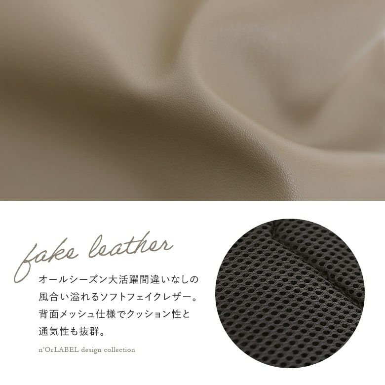 オールシーズン大活躍間違いなしの、風合い溢れるソフトフェイクレザーを使用。背面メッシュ仕様でクッション性と通気性も抜群なところが嬉しいポイントです。