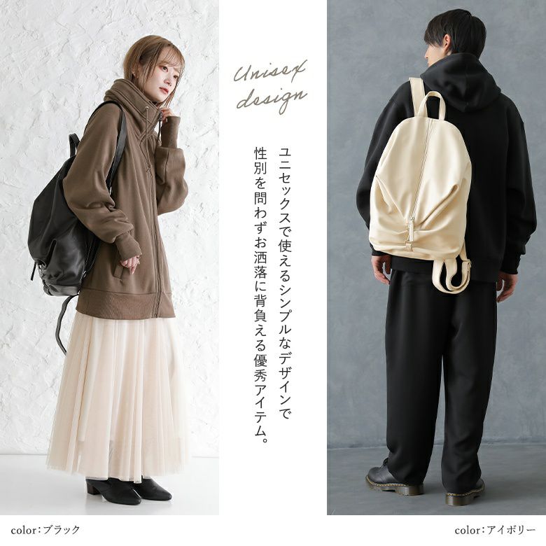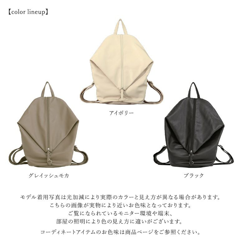 他にはないデザインで一目惚れしました! 変形デザインのリュックは別のデザインのものを購入、気に入っていますが、それと比べてベルト部分がふっくら厚みがあり、脇がきちんと縫われています。 これまでのものは、長く使っていると端からほつれてベルトが2枚に別れてしまっていたのですが、こちらはその心配もなさそうです。 どんな色の服とも合わせやすいかとアイボリーを買いましたが、どの色もそれぞれ可愛くて、迷ってしました。