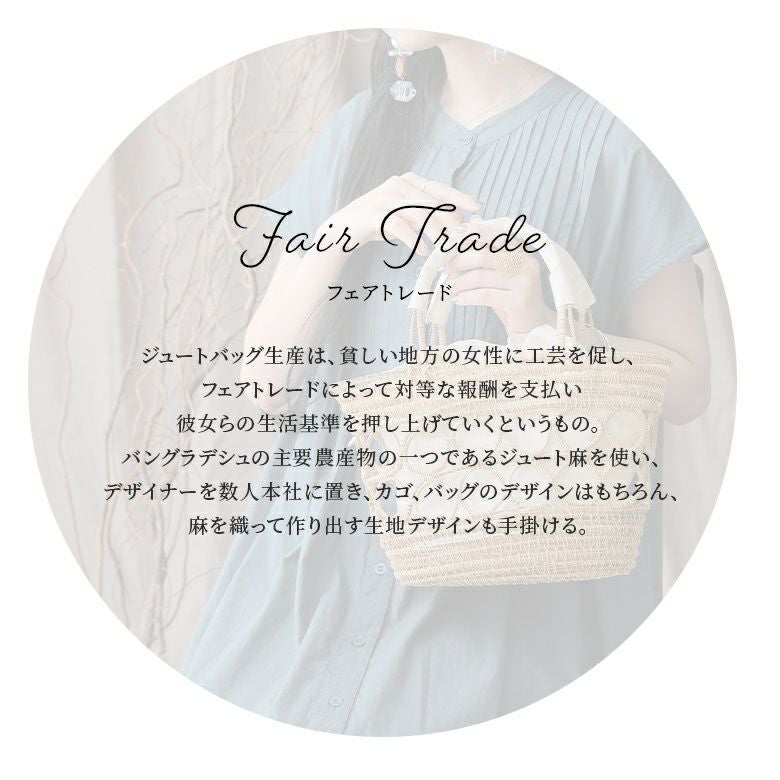 TARANGO社はバングラデシュで創設された非営利のNGO-NPO団体。バングラデシュの主要農産物の一つであるジュート麻を使い、デザイナーを数人本社に置いてカゴ・バッグのデザインはもちろん、麻を織って作り出す生地デザインも手掛けています。