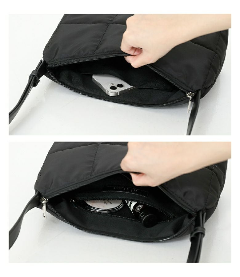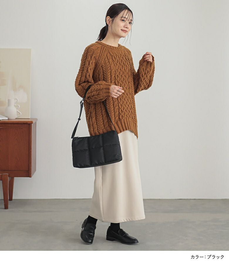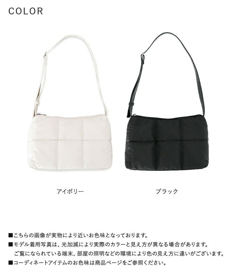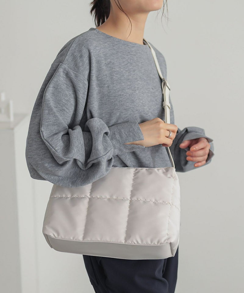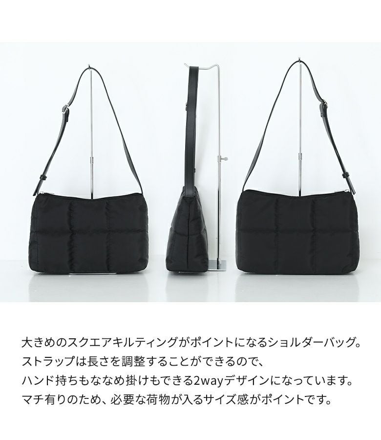 大きめのスクエアキルティングがポイントになるショルダーバッグ。