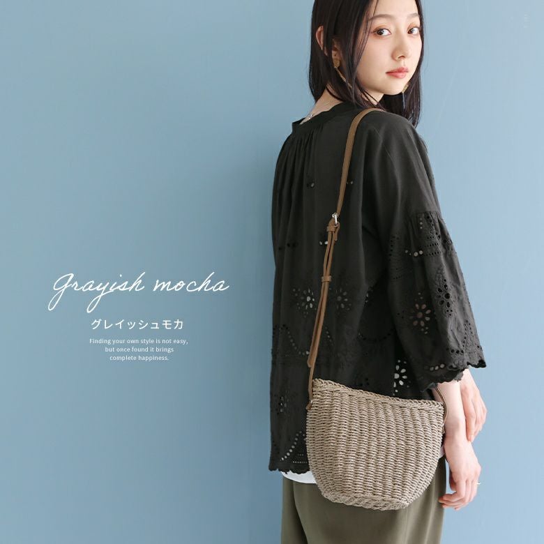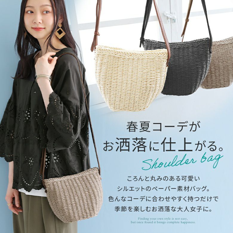 コーデに取り入れるだけでこなれ感たっぷりの、ラウンドペーパーショルダーバッグです。