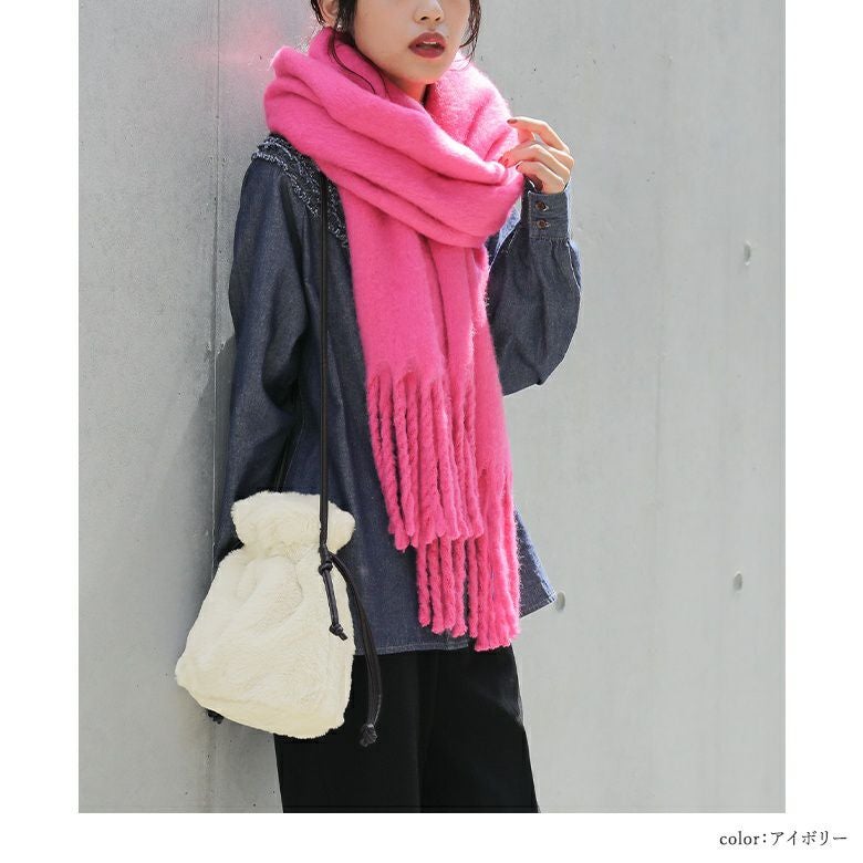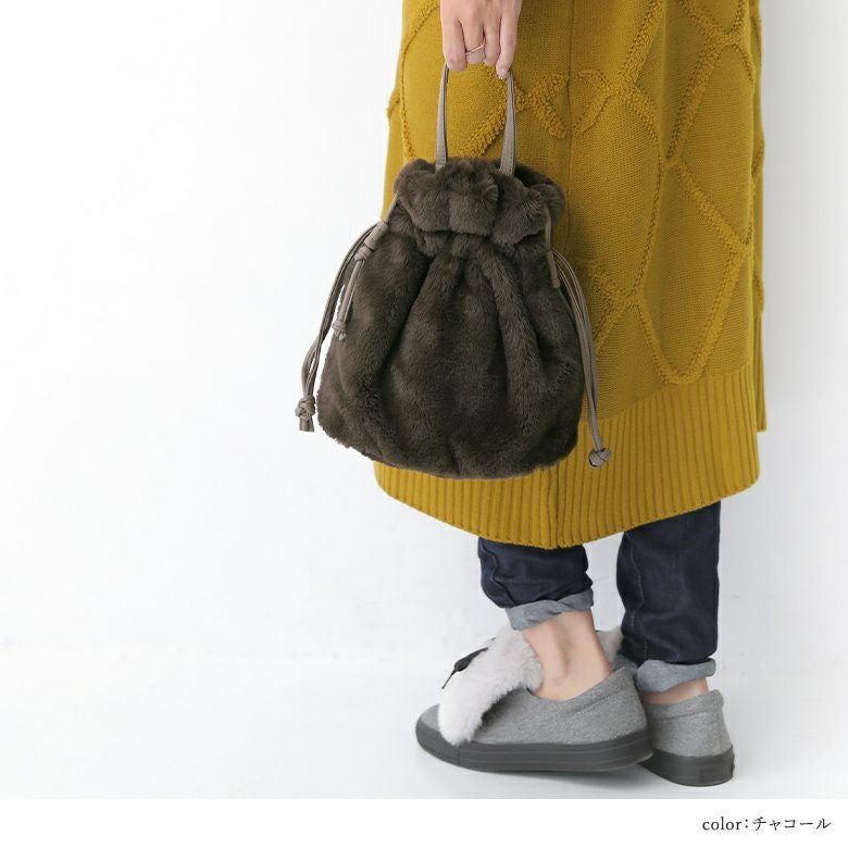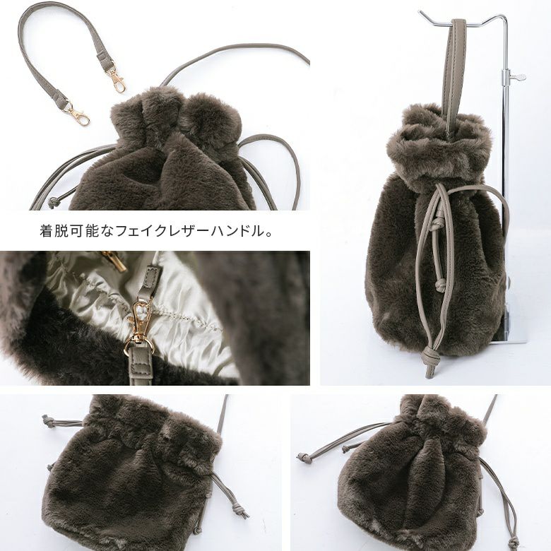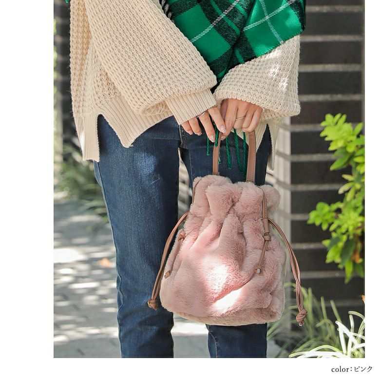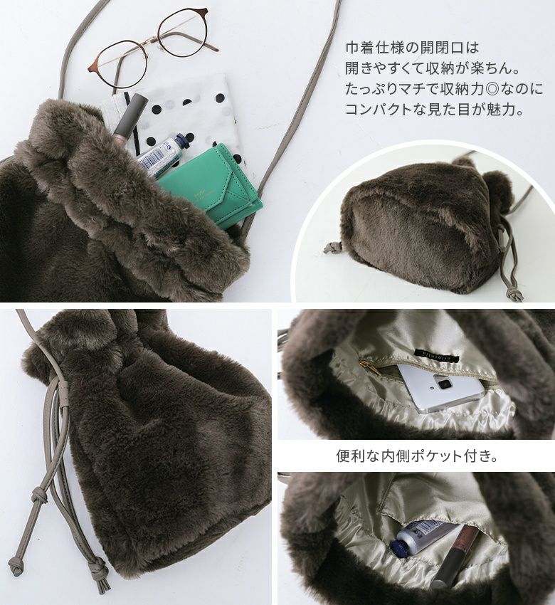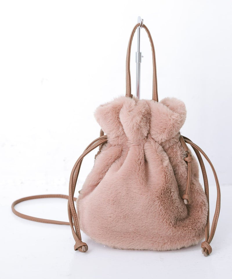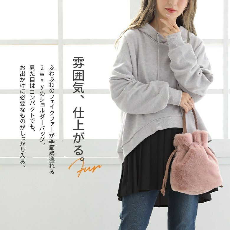 いつものコーデにプラスで魅力倍増、フェイクファー2wayショルダー巾着バッグです。