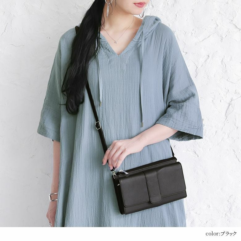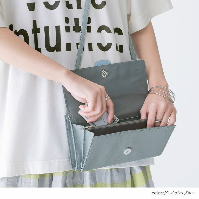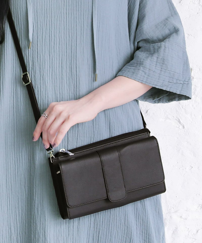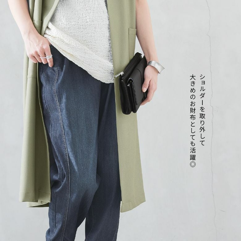財布とポシェット2つの機能を兼ね備えたウォレットショルダーバッグ。幅広いシーンに使えるシンプルなデザインと差し色になるカラー展開で、お洒落と機能性のどちらも叶えるアイテムです。