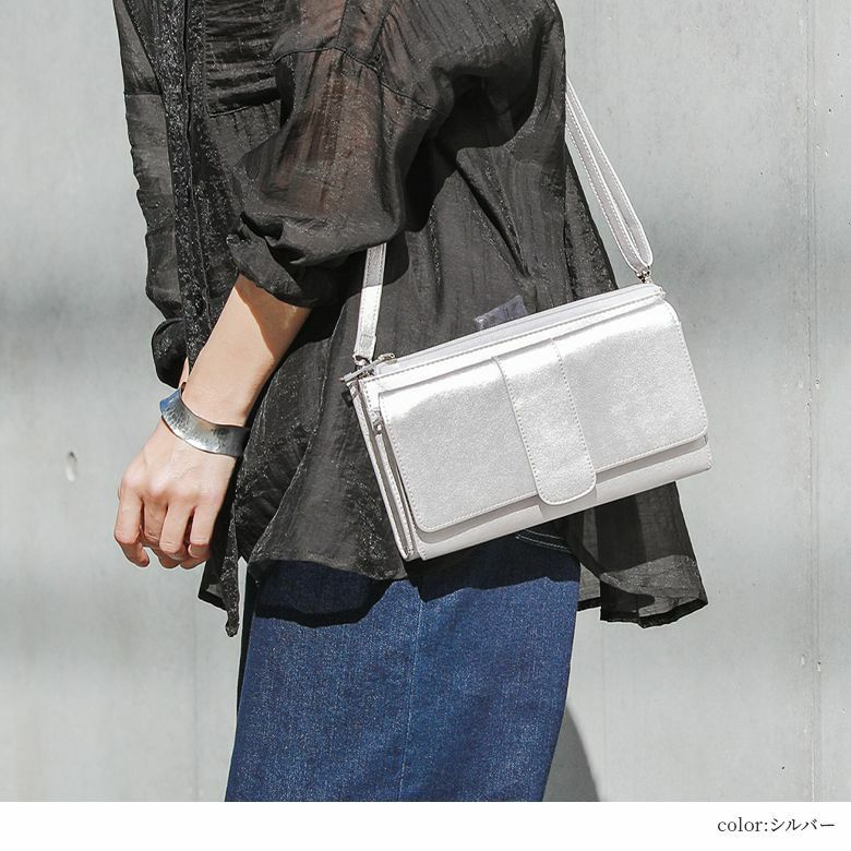 子供が生まれてからずっとこのタイプのお財布を使っています。抱っこ紐しながらリュックや荷物の中から財布を探すのがかなりストレスだったので…このタイプはお金もすぐ出せて、後ろのポーチの部分にエコバックやハンドジェルや日によっては通帳などなど、意外といっぱい入るのでこれだけですぐ外に行けます。今回シルバーを購入しましたが、落ち着いた感じのシルバーなのでギラギラ過ぎることもなく、何にでも合いそうな色合いでした。肩紐も1.5cmの幅があり…そこそこ太めでかけやすいと思います。本体もまあまあな容量が入りますが重くなくとても良い商品だと思います。 強いて言うなら中のカードをいれるポケットが、現在使っているズッケロフィラートのものより少ないのでもう少し付いてたらよかったなぁと思ったのと、ショルダーの紐の側面がなんでなのかペタペタします。使ってるうちに気にならなくなるかな? でも今回セールになってたのでこのお値段だったらかなりのお値打ちだと思いました。本当は売り切れのブラックが欲しかったので色違いもほしいなぁと思いました。