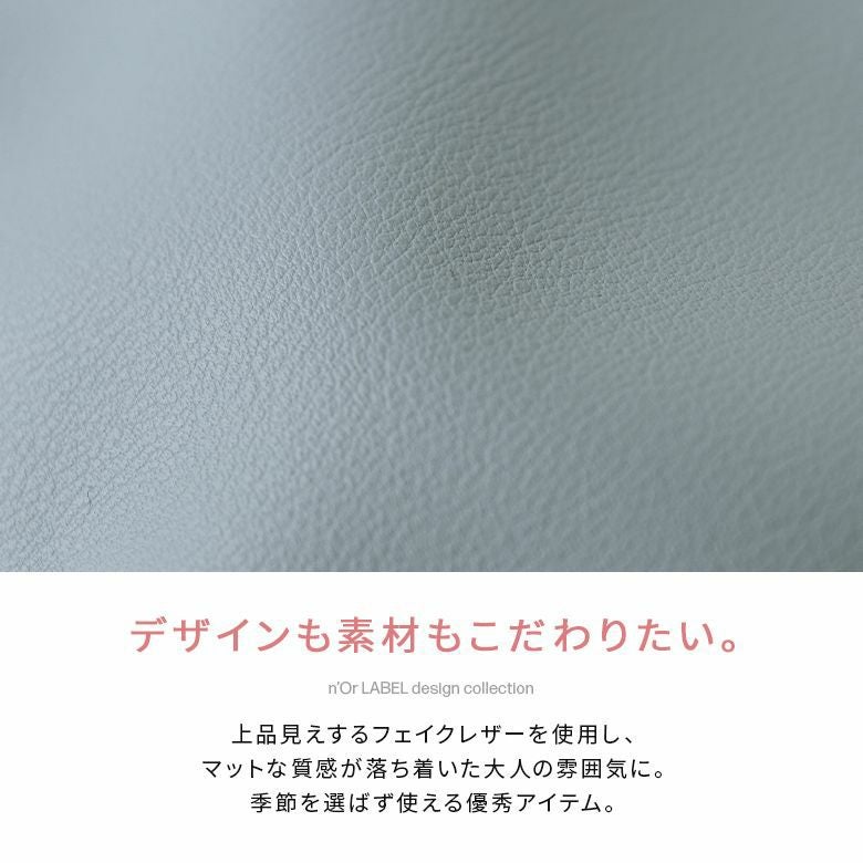 上品見えするフェイクレザーを使用し、マットな質感が落ち着いた大人の雰囲気に。季節を選ばず使える優秀さです。