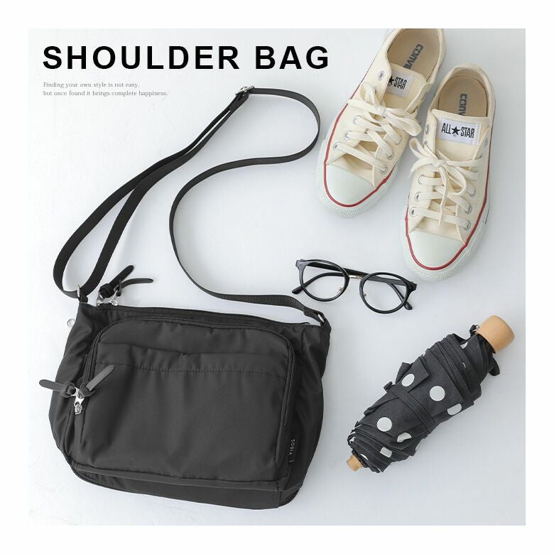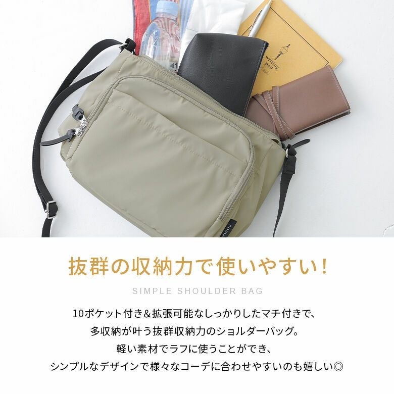 見た目以上の収納力で頼れる、多収納シンプルショルダーバッグです。