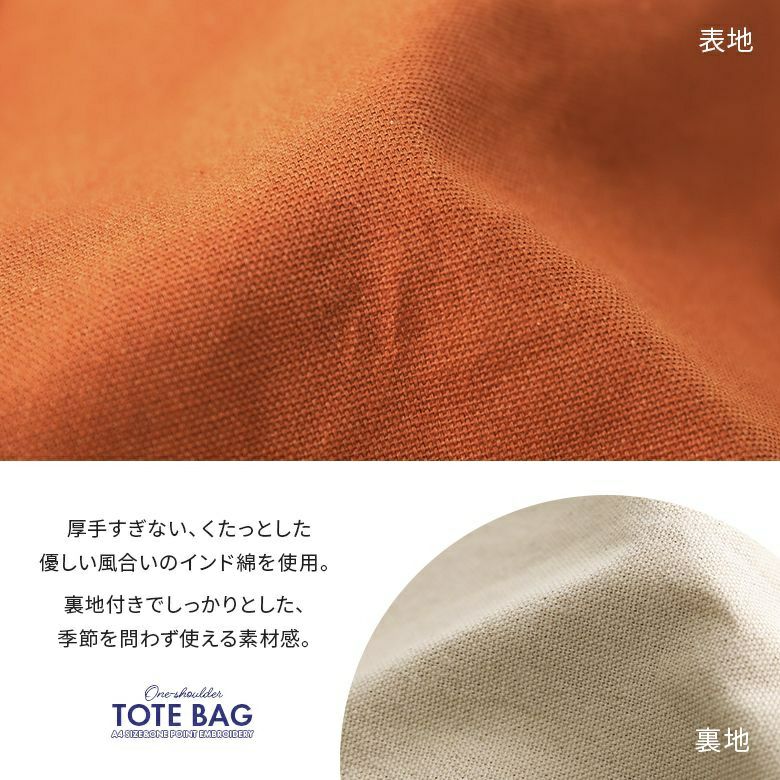 厚手すぎず、くたっとした優しい風合いのインド綿を使用。裏地付きで季節を問わず使える素材感です。