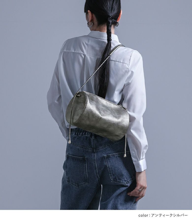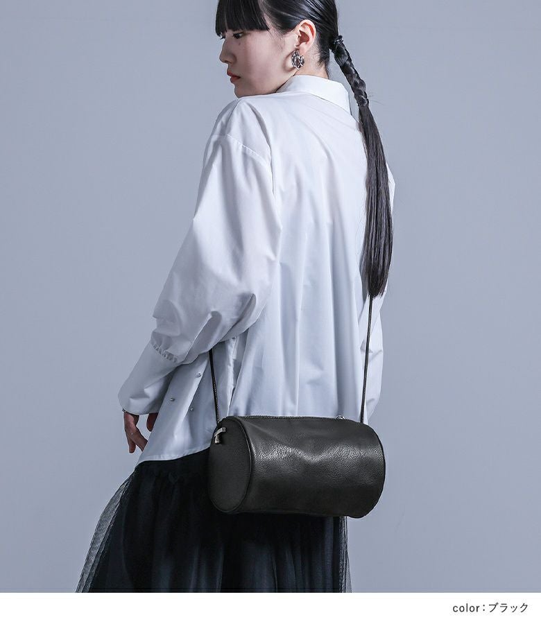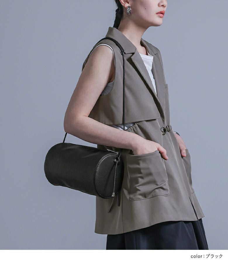 立体感のある円柱型と、アクセントになる金属パーツがスタイリングのポイントになるショルダーバッグ。アクセサリー感覚で取り入れることができる大きすぎないサイズ感ながら、お出かけに必要な荷物も入る容量です。ショルダーの長さはコーデや気分によってお好みの長さに調整でき、持ち方によって雰囲気をチェンジできます。