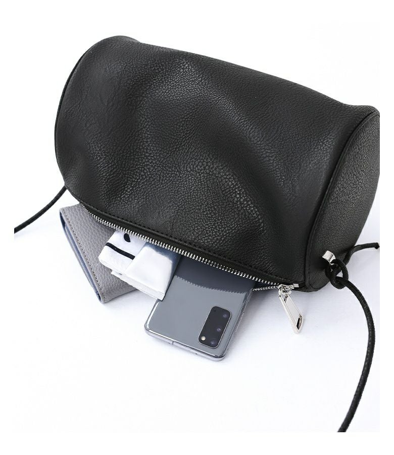 高級感溢れるフェイクレザーが魅力、円柱型ショルダーバッグ。